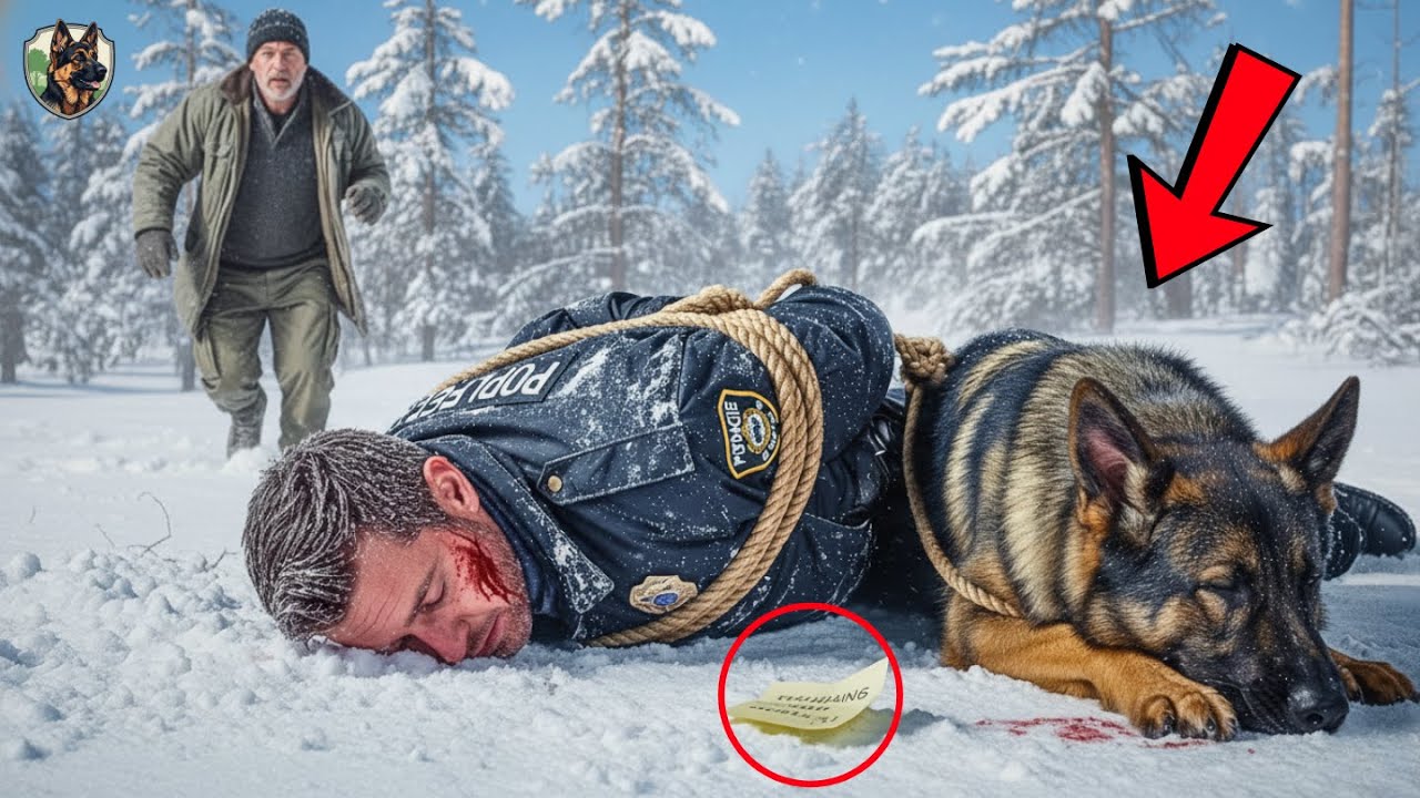 His hands were bound tightly behind his back with rope, so tight the skin had turned purple. Blood had soaked into the snow beneath him. Beside him, the German Shepherd was muzzled with a strip of cloth and had his legs bound as well. Even unconscious, the dog had angled his body protectively toward the man. Walter’s eyes flicked up to the tree just above them. A sheet of paper was tacked to the bark with a hunting knife.