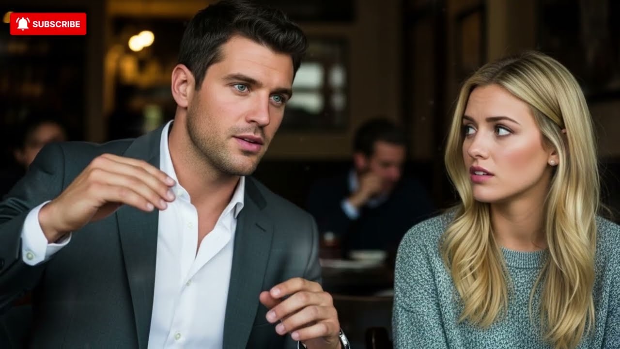 The redcoated woman leaned closer to him, whispering again, but this time Ryan didn’t laugh, his gaze stayed locked on Emma. Her stranger leaned forward slightly, his hand resting casually on the table close to hers. “Rough day?” he asked softly, for her ears alone. Emma blinked momentarily stunned by his kindness. She nodded almost imperceptibly.