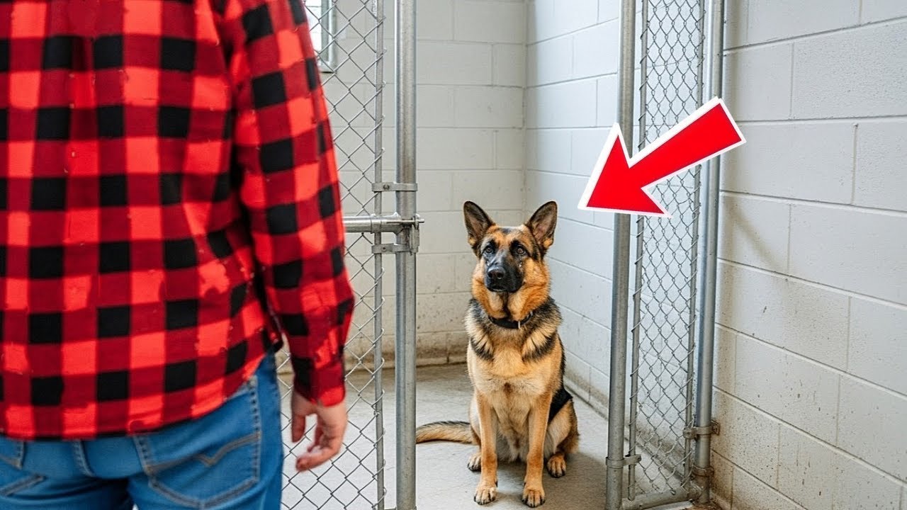 It was supposed to be just another visit to the local animal shelter. But when a man in a red plaid shirt stopped in front of one kennel, everything went silent. The German Shepherd inside didn’t bark. He froze. Then, to everyone’s shock, tears welled in his eyes, and a soft, broken whimper escaped his throat. The man’s face went pale.