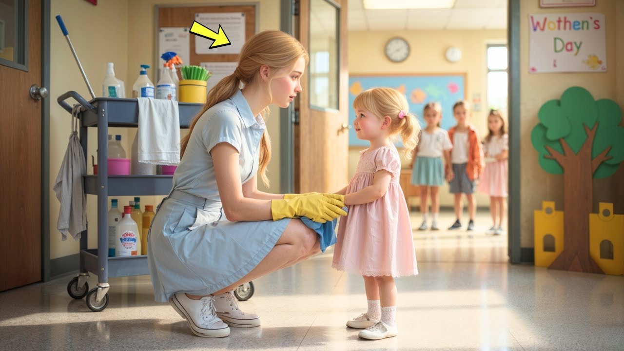 To most she was just the janitor, the one who swept floors, cleaned up juice spills, wiped down tables, the one who always kept her head down. But if anyone had looked closely, really looked, they might have seen the sadness lingering behind her bright blue eyes, a quiet ache that seemed etched into her expression.