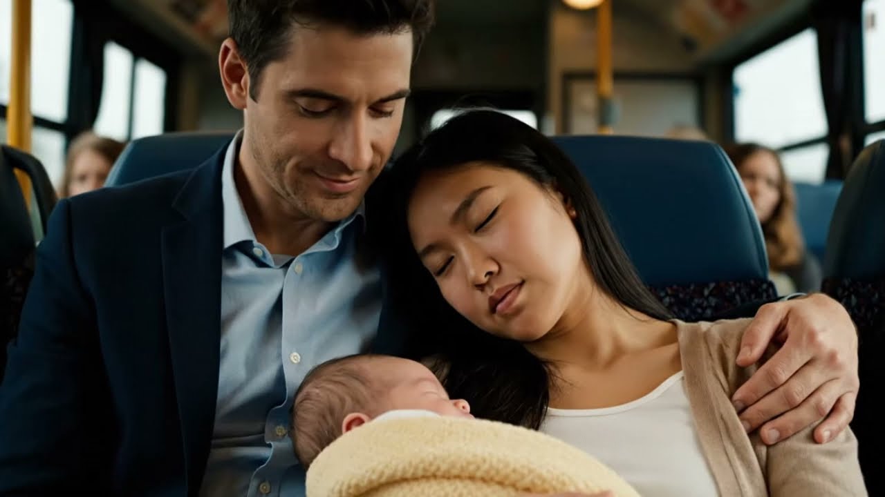 The gentle rumble of the bus and the warmth from the heater made it impossible to stay alert. Without realizing it, her head began to drift sideways, landing softly on the shoulder of the man sitting beside her. He didn’t move away. Instead, 42-year-old Michael Chen sat perfectly still, watching the city lights blur past the window.