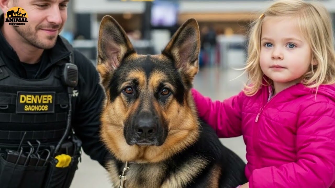 Cole’s voice shook as he said into his mic, “We’ve got a situation. C-22 on full lockdown and someone out there set this up. Red emergency lights pulsed across the polished airport floor, throwing long, trembling shadows over gate C22. The noise of panic had faded into an eerie hush broken only by the low rumble of barking dogs. 14 German Shepherds stood motionless in a protective circle, their bodies forming a living wall around the tiny girl in the pink jacket.