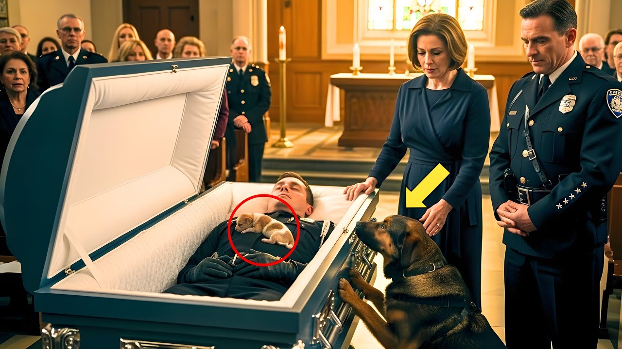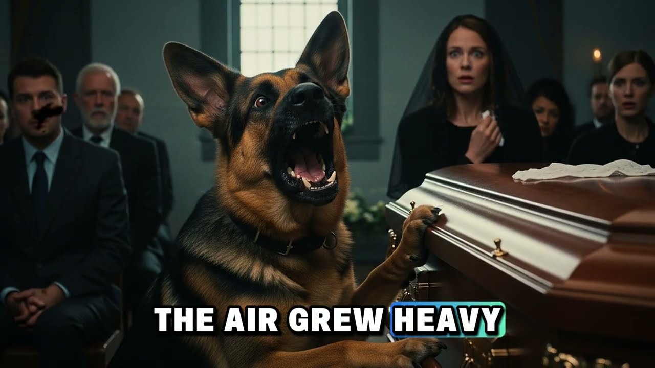 The funeral was silent until the German Shepherd began barking at the coffin, refusing to stop. At first, everyone thought it was grief. But when the barking turned frantic, a strange tension filled the room. Officer Daniel Granger, a decorated hero and beloved husband, lay in the casket while his loyal K-9 partner, Rex, sat at his feet in his black police vest.
