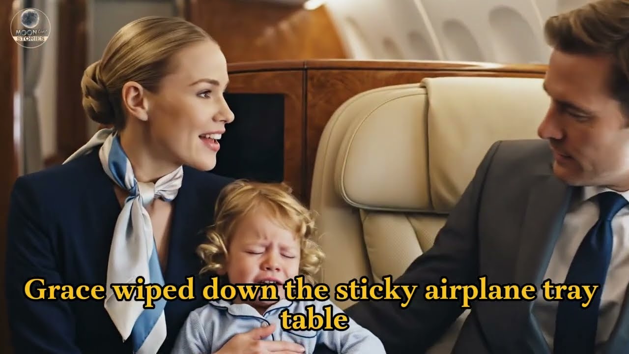 The soft whimpering that tugged at something deep in her chest. A little girl, maybe four years old, sat curled against the window while her father stared helplessly at his phone. The child’s cheeks were stre with tears, and she clutched a worn, stuffed elephant like it was her only friend in the world. Grace had seen plenty of crying children during her two years working these flights.