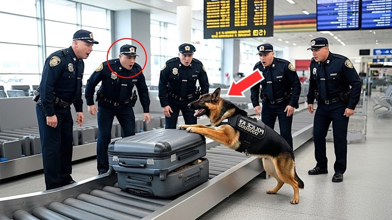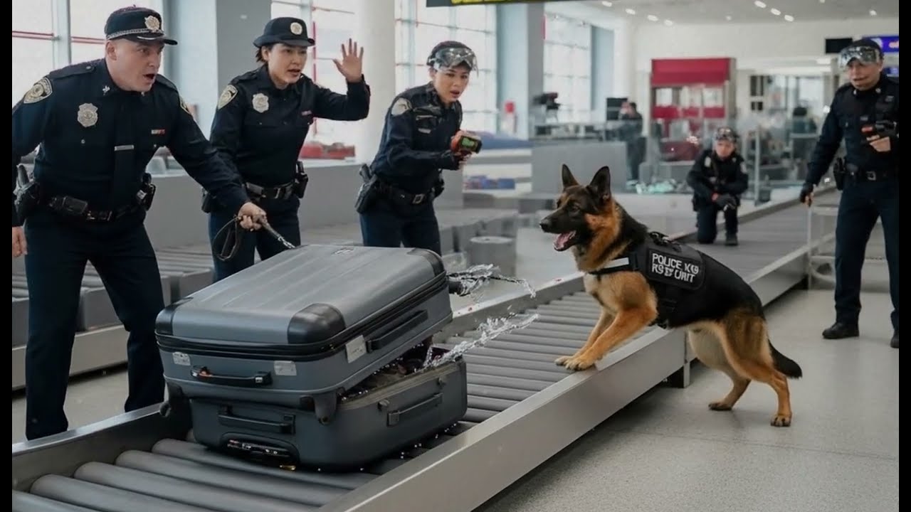 The German Shepherd suddenly lunged forward, his sharp teeth sinking into a black suitcase sliding across the airport conveyor belt. Passengers screamed. Officers froze. For a moment, no one understood what was happening until the dog refused to let go, growling with a fury his handler had never seen before. “Rex, leave it!” Mark shouted.