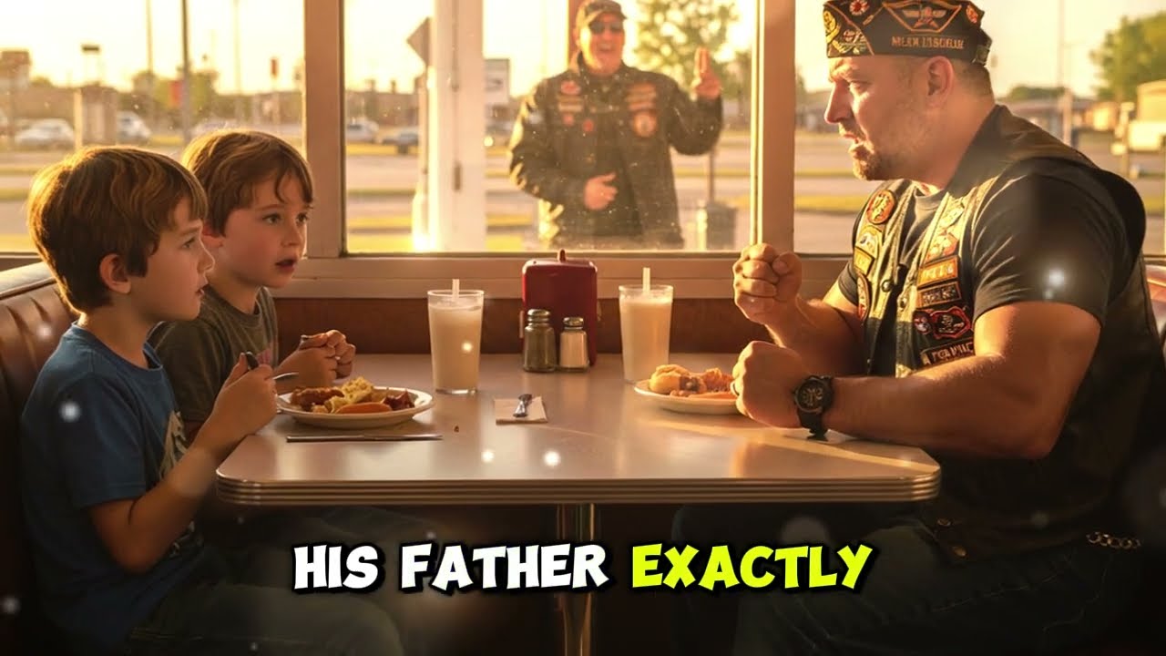 The kind of noise that didn’t just break silence, but spit on it, was about to walk through that front door. The door slammed open with the kind of force that rattled the ketchup bottles on the counter. Three men stepped in. Boots, heavy jackets, louder leather vests patched with names like tank, goose, and blade. Their laughter hit first.