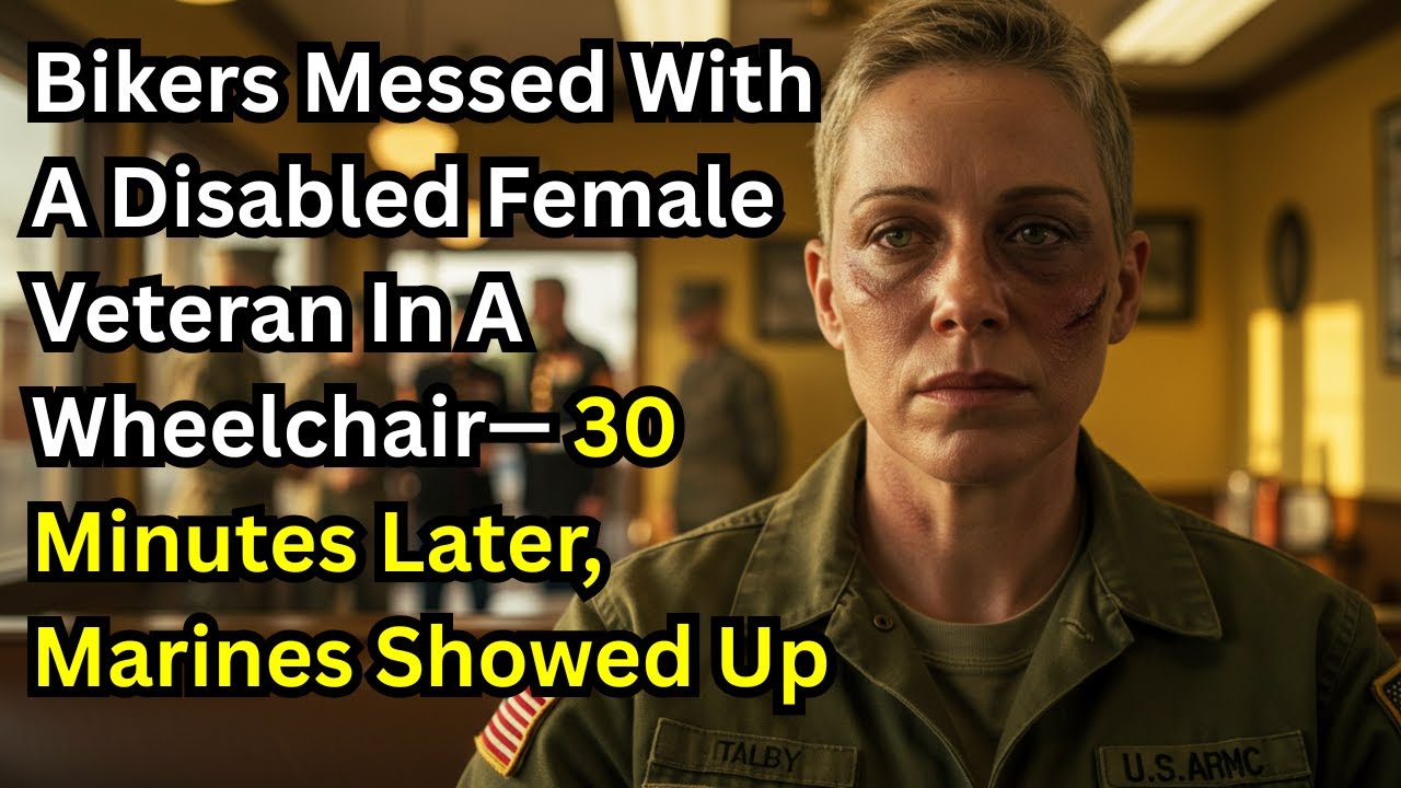 “With respect, staff sergeant. It is not nothing,” he replied loud enough for the entire diner to hear. “Nobody touches one of ours. Not in combat, not in peace. Not ever.” The younger Marine stepped forward, eyes locked on the bikers. Staff Sergeant Torres led our unit through Fallujah. She pulled three men out of a Humvey after it was hit.