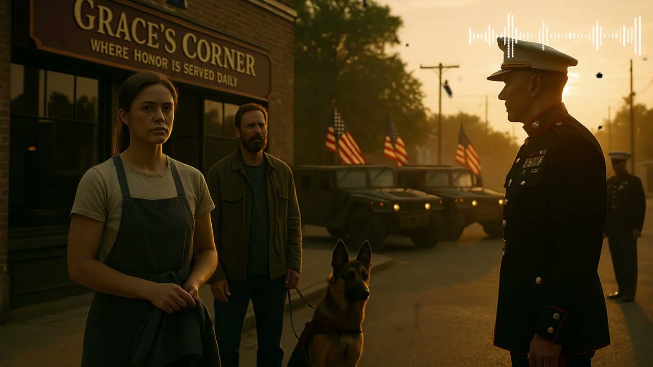 Not because she broke a rule, but because she stood up for a veteran and his service dog. What Grace didn’t know was that someone filmed the whole thing. And before the cafe’s morning rush was over, the ground began to shake. Four military Humvees rolled into the lot, outstepped a Marine colonel in full dress blues, a man who once owed his life to the very veterans she protected.