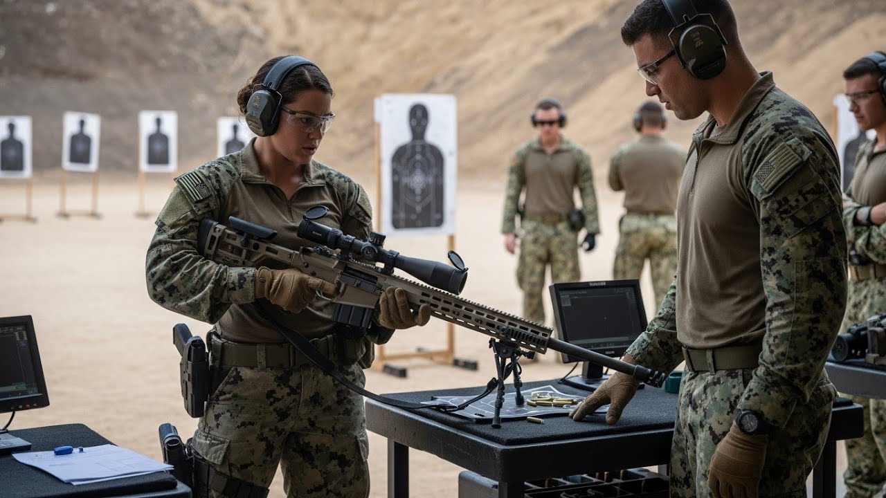 “I’m telling you, something’s wrong with this rifle,” Rodriguez insisted, frustration evident in his voice. His team leader, Chief Petty Officer Jake Sullivan, was losing patience. Sarah had watched Rodriguez’s form for the past hour. His breathing was erratic, his grip inconsistent, and he was jerking the trigger like he was trying to ring a doorbell. When Rodriguez threw down the rifle in anger, declaring the weapon was completely screwed up, Sarah found herself speaking before she could stop herself. The rifle’s fine. You’re pulling your shots left because you’re anticipating recoil.