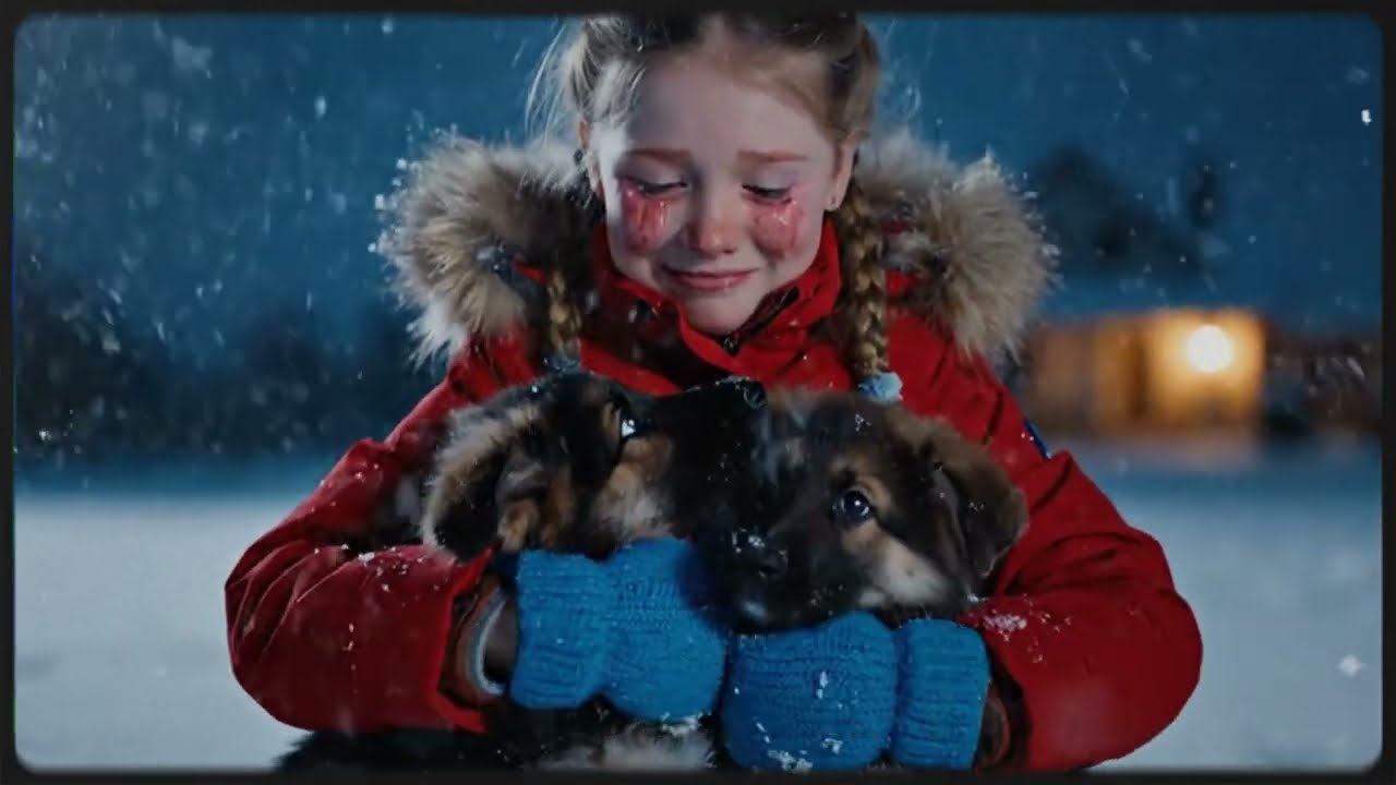 On a freezing winter night, a little girl spotted two helpless puppies shivering in the snow. Their tiny bodies trembled, their whimpers cutting through the icy silence. With tears streaming down her face, she pressed her hands together as if begging the universe to help them. No one else was around. No one else cared.