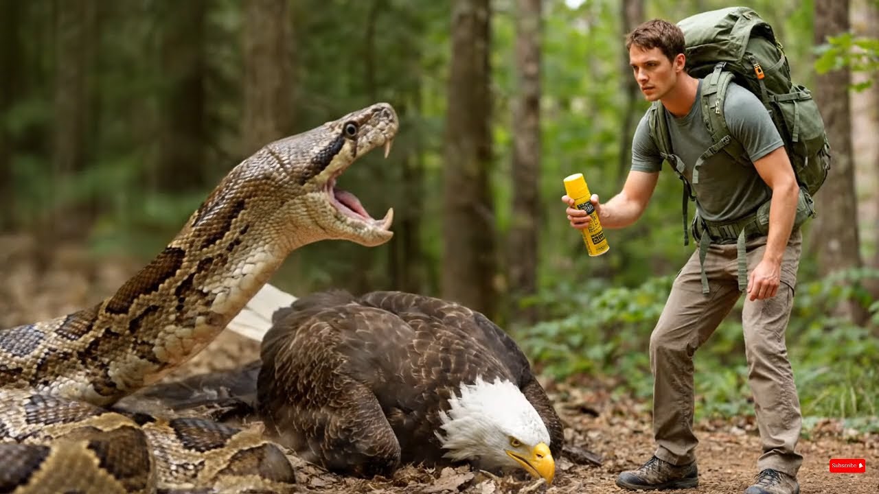 The video serves as more than just sensational content; it is a profound lesson in courage. It teaches that heroism is often not a planned event, but a spontaneous reaction to injustice and vulnerability. It is the willingness to put oneself at risk—to face the heat of the terrifying predator—for the sake of another creature’s survival. The tale of the eagle family and the colossal constrictor, now inextricably linked with the nameless hiker, will be told for years as a prime example of unexpected human heroism.