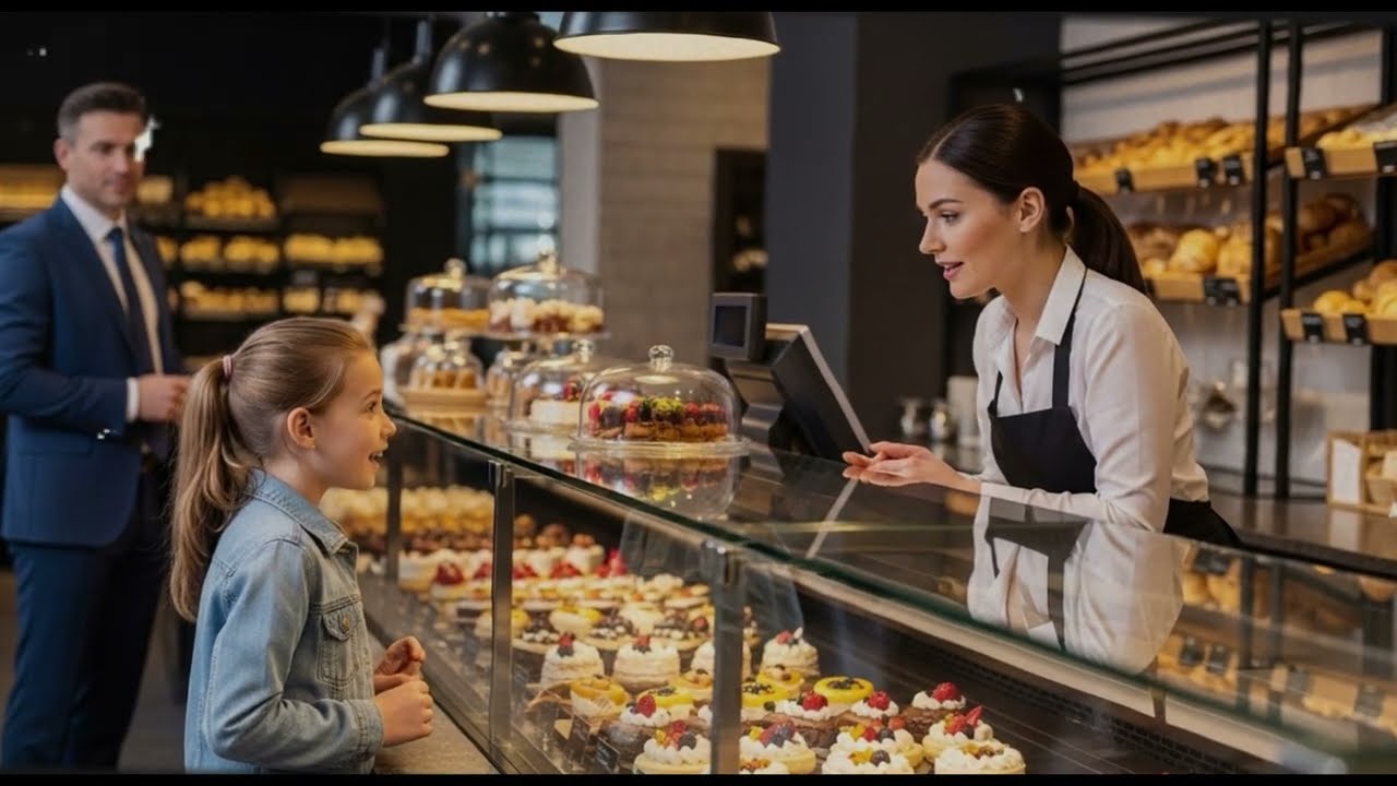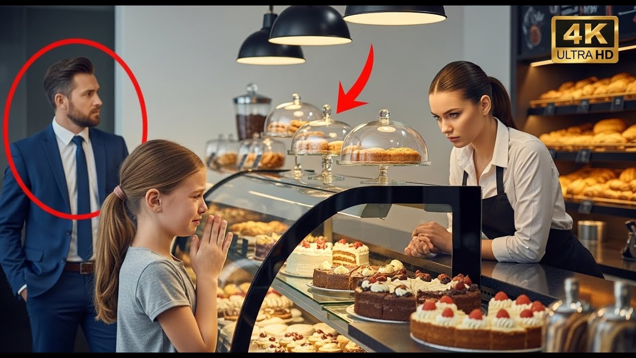 His driver slowed near a small bakery, the kind of cozy corner shop that smelled like memories. And there she was, a thin girl, no older than eight, sitting cross-legged on the sidewalk, wearing a torn hoodie two sizes too big. Her lips trembled as she looked through the bakery window at a cake, old, untouched, pushed to the side.