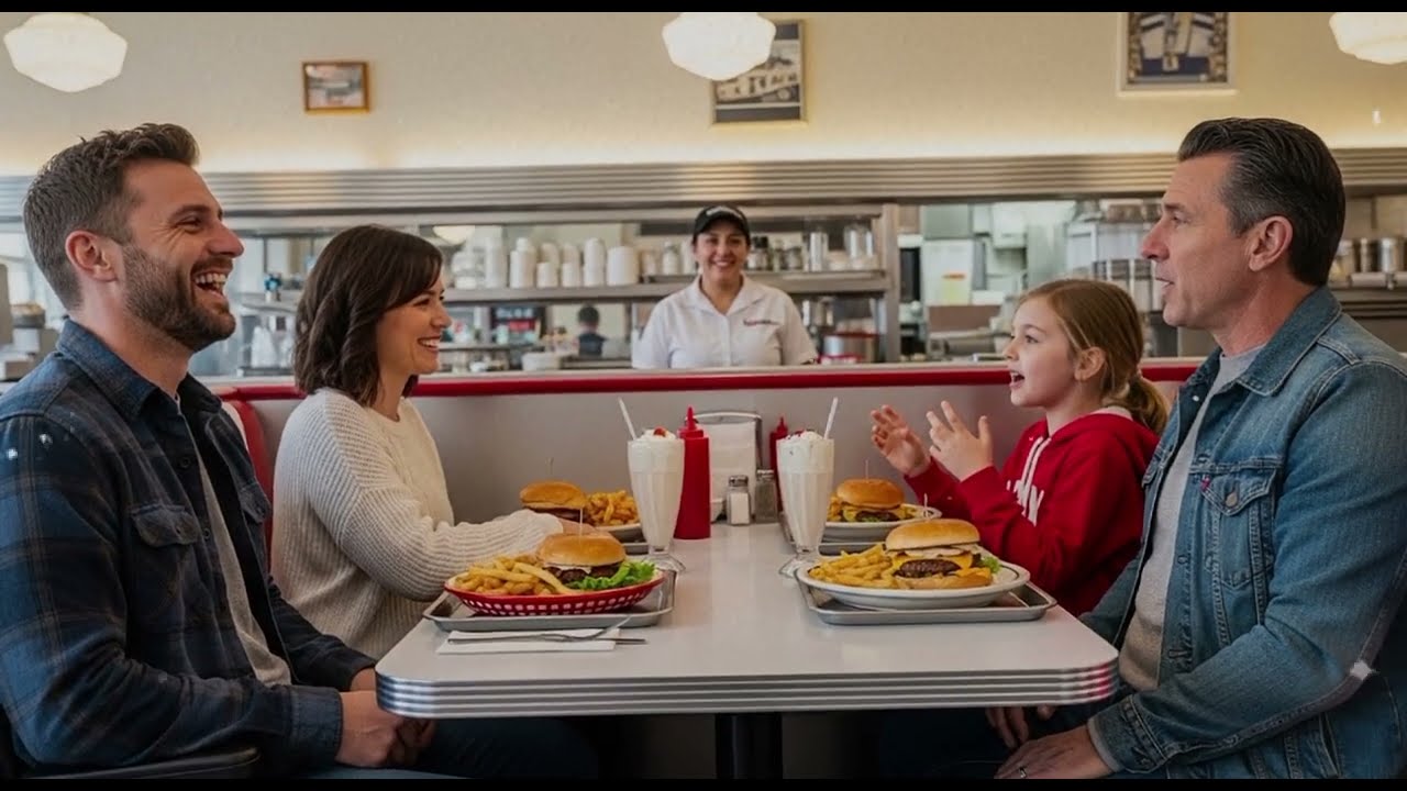 She hesitated, surprised, then smiled back. I’d like that they rolled across the street together. Mark, his two kids, and the woman. The diner owner, an older man with a kind face, held the door open and cleared a table right by the window. Within minutes, they were laughing over burgers and fries.
