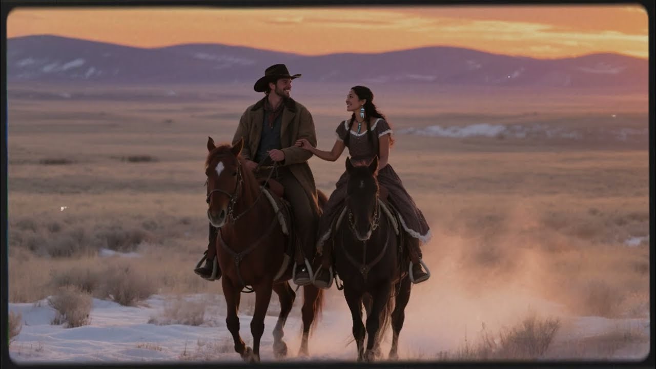 Yet when he placed the simple ring on her finger, something in the air changed as though the land itself took a breath. The preacher said, “What God joins in snow, no man can melt.” Outside, flakes drifted from a bright sky, soft and slow, blessing the moment with silence. They rode home together, the horizon stretching endless and clean.