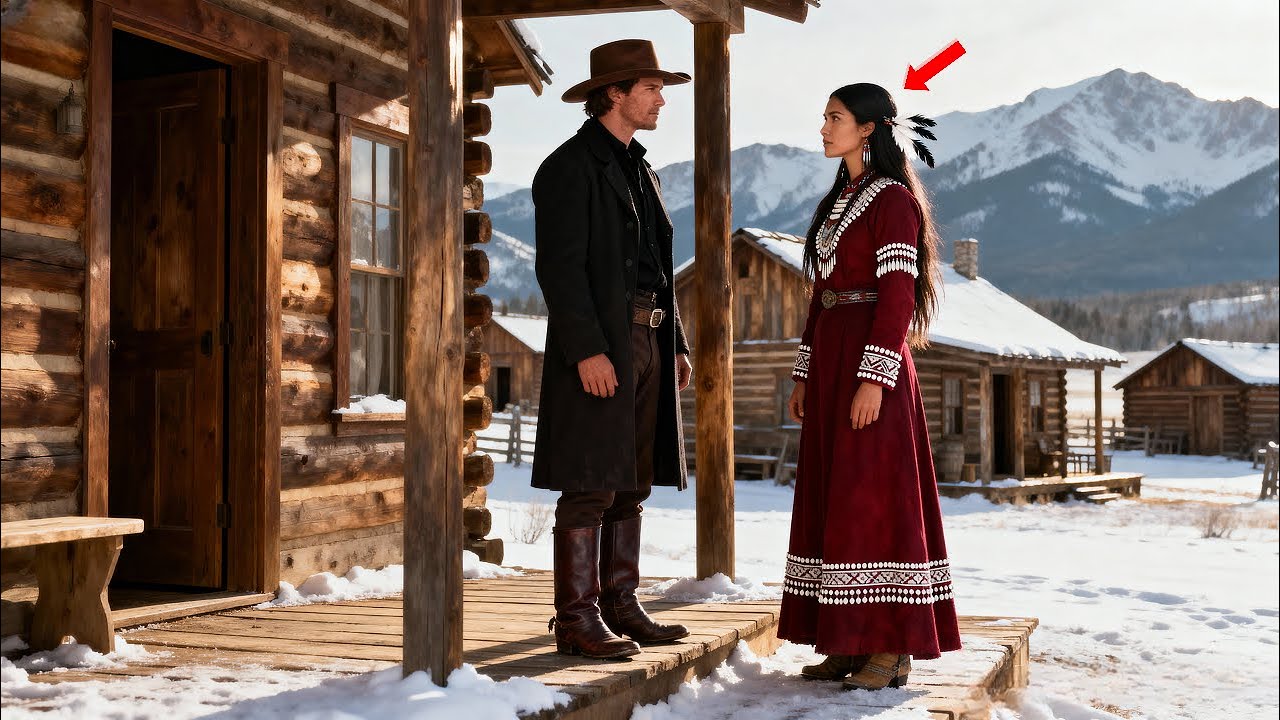 ” His voice was quiet, steady, but his eyes held a storm that no sheriff could calm. The following night, he found her packing her few belongings. Two shirts, a comb, a small pouch of beads. “You were right,” she said softly. “I bring trouble.” He took a step closer, snow still clinging to his coat. “You’re the first thing this land’s given me worth keeping.