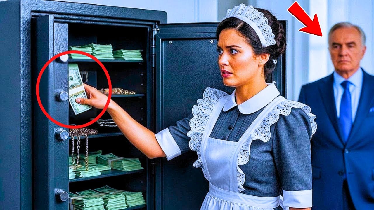 Walls lined with secrets, air heavy with things unsaid. Her sneakers whispered across the floor. She pushed the cleaning cart gently into place like always, glancing up, only out of habit. And then she saw it, the safe open, wide open. Her breath caught. It wasn’t a jar. It wasn’t unlocked by accident.