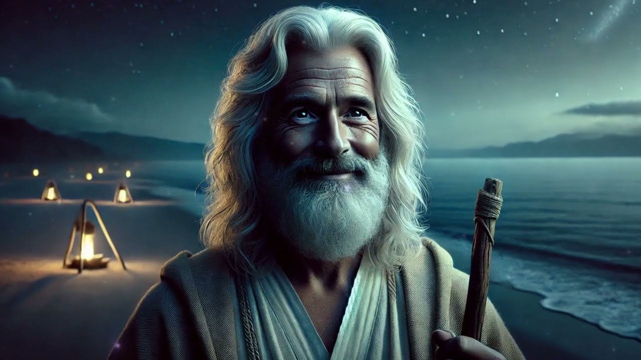 Una brisa cálida rozó su rostro. No era común. En esa costa las noches eran frías y el aire solía oler a sal y soledad. Pero esa noche olía a algo distinto, a madera vieja, a fuego recién apagado, a fe. Entonces lo vio a unos metros junto a una roca, un anciano de cabello blanco y bastón en mano lo miraba en silencio. Su rostro era sereno, sus ojos tan profundos como el océano mismo.
