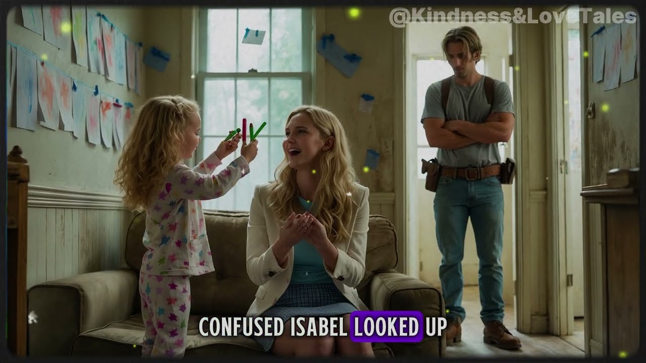 Without hesitation, she walked over and placed it in Isabelle’s lap. “This is for you,” Lily said proudly. Isabelle unfolded the paper. It was a crayon drawing, bright colors filling the page, a tall man with brown hair, a little girl in yellow shoes, and beside them, an empty outline of a woman with golden hair.
