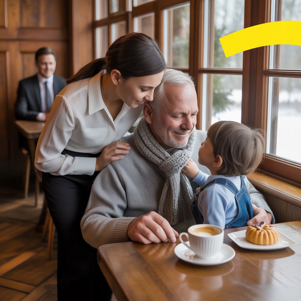 Have you seen anyone matching that description? Sarah glanced toward Frank’s table where the elderly man was showing Emma how to make a paper airplane from napkins. “May I ask who’s looking for him?” “I’m his son,” the man replied, relief evident in his voice as he spotted Frank. I’ve been searching for him for hours. Sarah watched as the man approached Frank’s table, and she saw the complex emotions that crossed both their faces when father and son made eye contact.