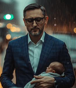 “Charlotte, this is the key to my father’s house… He’s staying with me for now, so the house is empty. You and your daughter can stay there,” Ryan said, handing over the keys. He instructed his driver to take Charlotte and her daughter, Lily, to the safe house and stop for every necessity: food, clothes, and diapers. Ryan then left on foot for his meeting, wet and late, but morally whole.